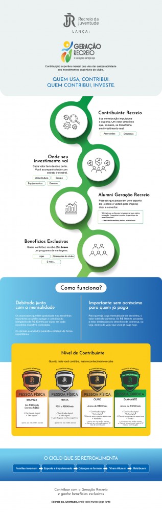 O Geração Recreio surgiu para criar um ciclo virtuoso, onde quem passou pelo esporte do clube retribui, quem está vivendo contribui, e quem ainda vai chegar encontra um caminho ainda melhor e se beneficia.