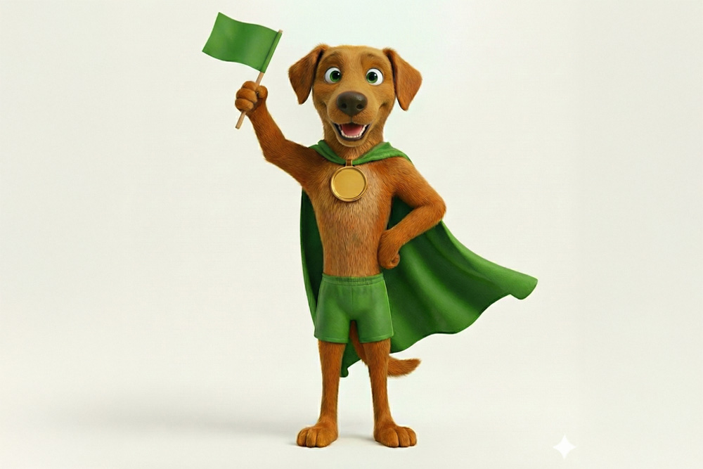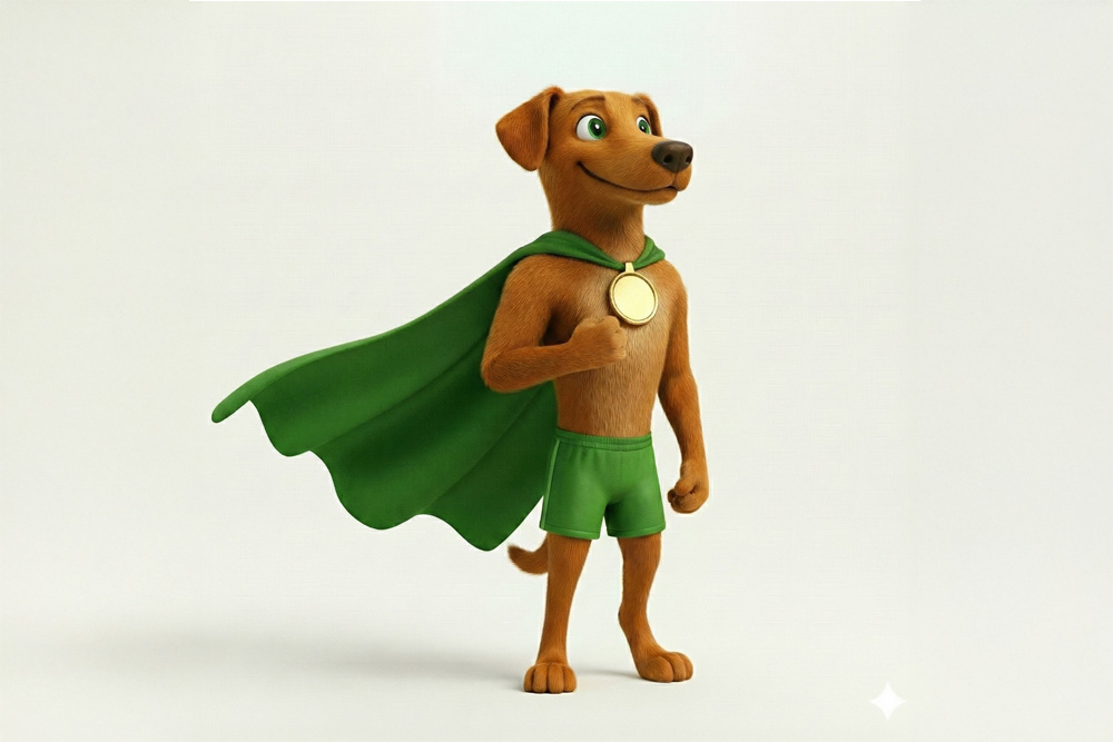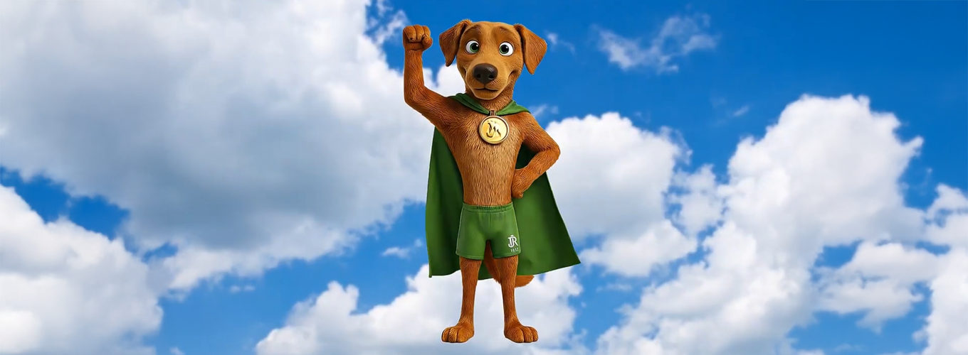 Com uma capa de super-herói, uma medalha e um calção esportivo, o mascote também é representativo e diretamente relacionado ao esporte, um dos pilares organizacionais do RJ.
