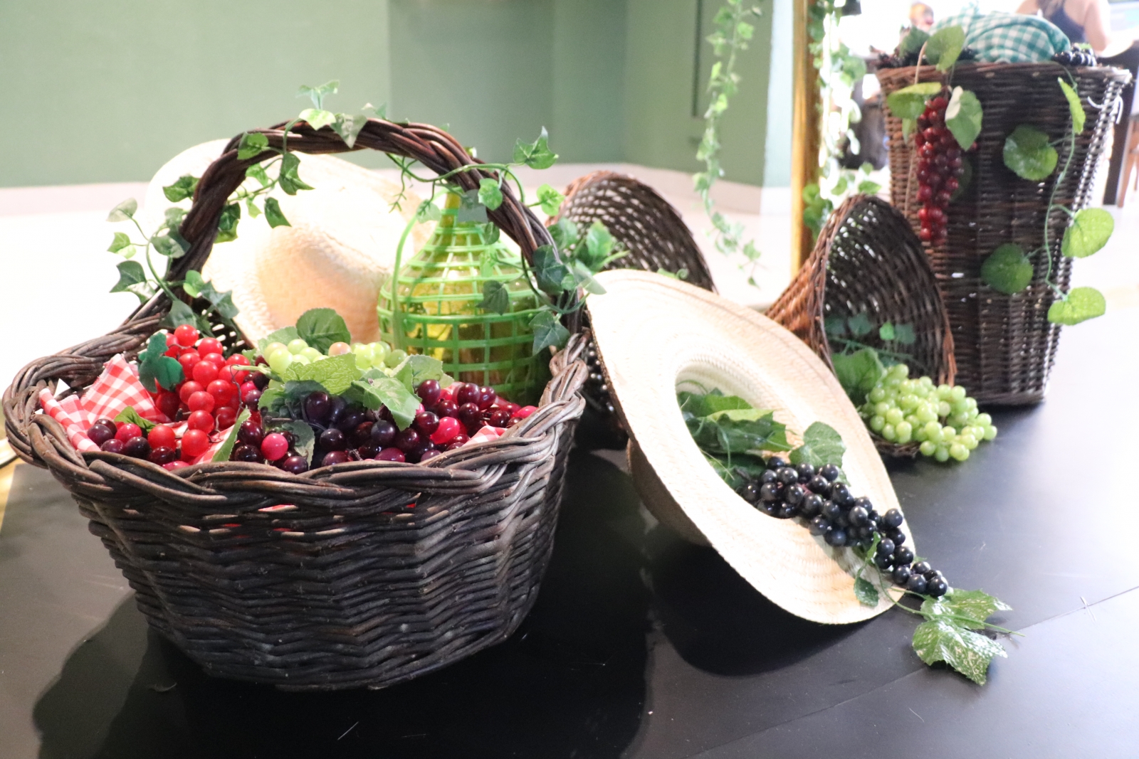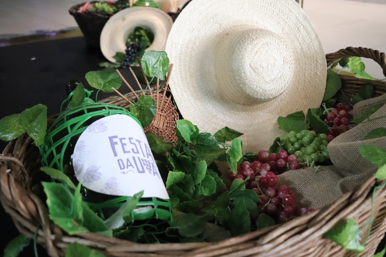 O espaço reúne videiras, cestas, chapéus e barris que carregam memórias do trabalho árduo, da fé e da união familiar, os valores trazidos pelos imigrantes italianos e preservados ao longo das gerações. A colheita representa o esforço coletivo, o encontro entre gerações e a celebração da vida simples. As cestas simbolizam o cuidado e a partilha: nelas, a uva é colhida com dedicação e levada adiante como fruto do esforço de muitos.