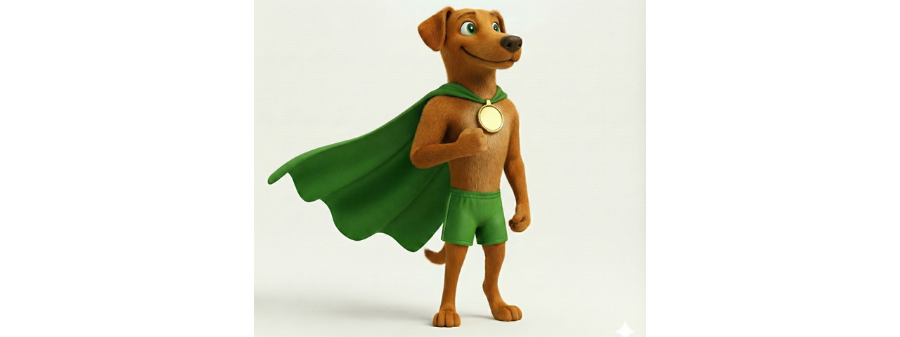 Com uma capa de super-herói, uma medalha e um calção esportivo, o mascote também é representativo e diretamente relacionado ao esporte, um dos pilares organizacionais do RJ.